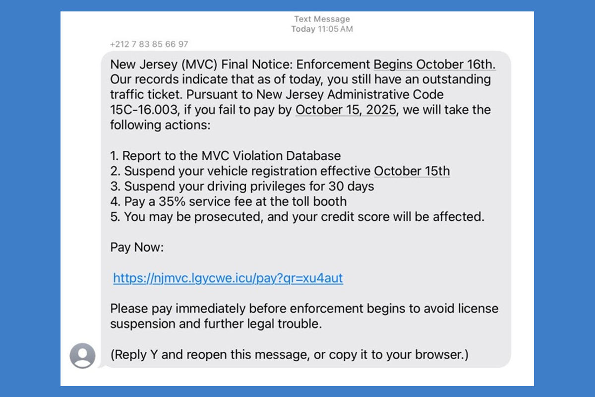 NJ MVC SMiShing Campaign Continues