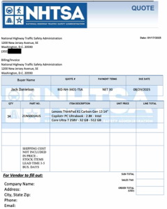 The NJCCIC observed a phishing campaign imitating the US National Highway Traffic Safety Administration. In this campaign, threat actors send a phishing email containing a PDF file that looks legitimate and appears to be benign. To add credibility to the email, the threat actors use nhtsagov[.]org as the email domain, an attempt to typosquat the true domain—nhtsa[.]gov.