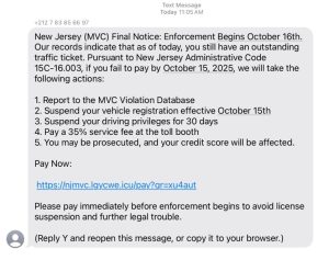 NJ MVC SMiShing Campaign Continues
